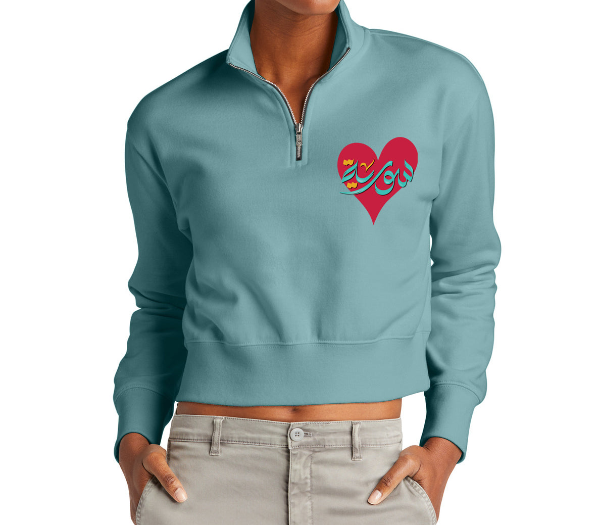 Elevate your wardrobe with the DT6111 Women's V.I.T.™ Fleece 1/2-Zip, now featuring elegant Syrian Arabic calligraphy. Perfect for winter, this soft fleece combines style, comfort, and unbeatable value: